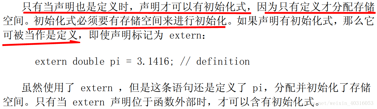 为什么会这样呢?因为 extern int a; 只是声明而不是定义,声明是不会为变量开辟内存空间的,自然无法对其进行初始化的操作。