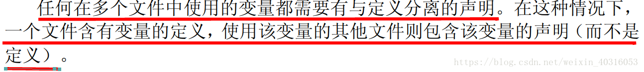 当您使用多个文件且只在其中一个文件中定义变量时(定义变量的文件在程序连接时是可用的),变量声明就显得非常有用。您可以使用 extern 关键字在任何地方声明一个变量。虽然您可以在 C++ 程序中多次声明一个变量,但变量只能在某个文件、函数或代码块中被定义一次。