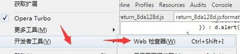 - 点击左上角,选择"开发者工具",选择"WEB检查器"。